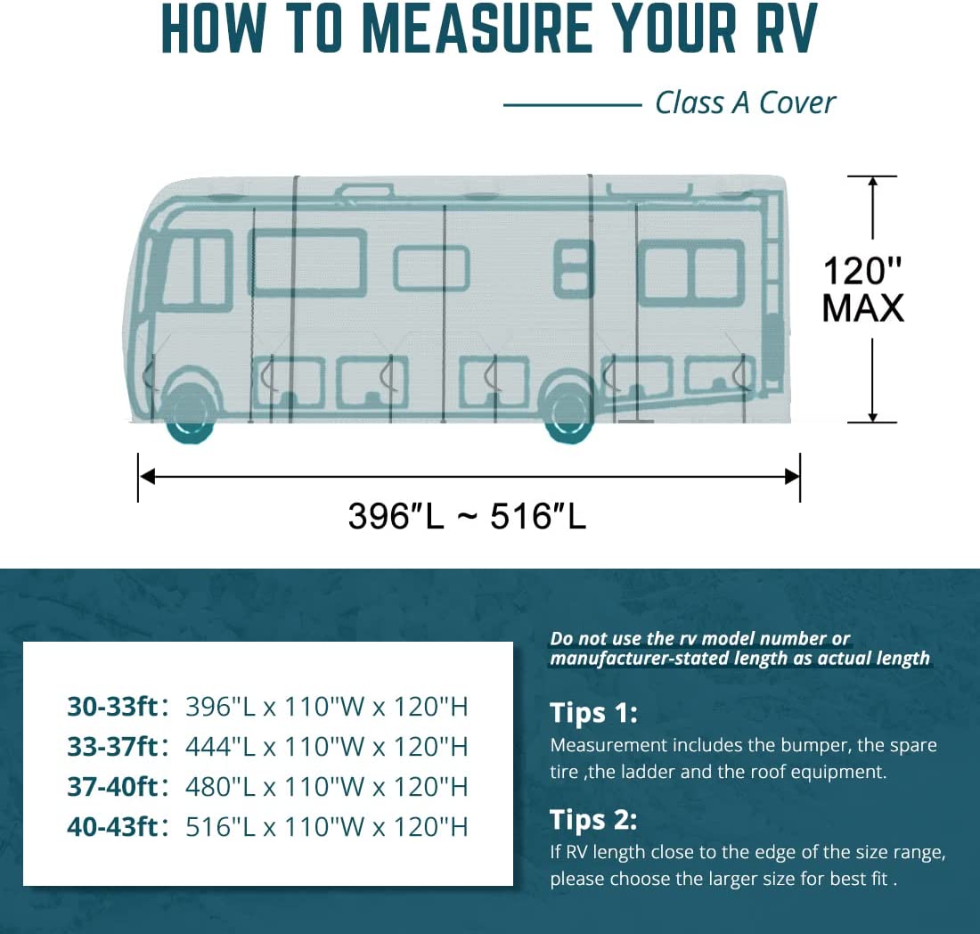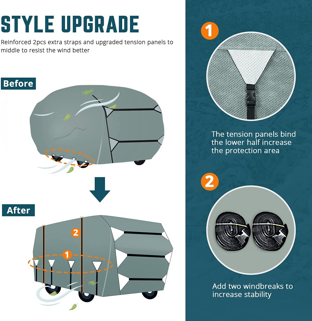 KING BIRD Upgraded Class A RV Cover,Anti-UV Top Panel, Durable Camper Cover