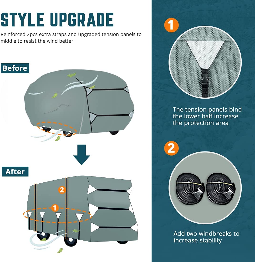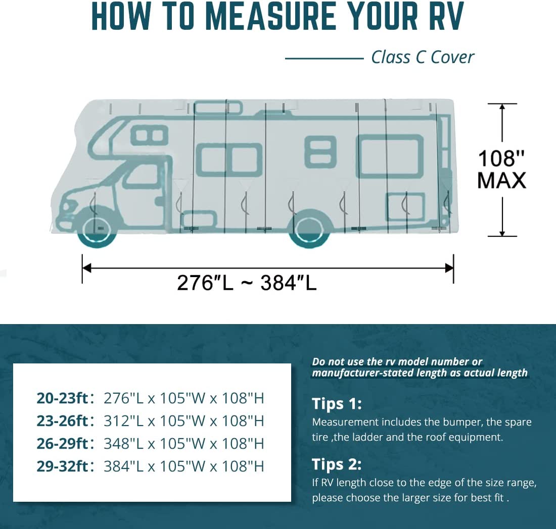 KING BIRD Upgraded Class C RV Cover, Anti-UV Top Panel, Durable Camper Cover