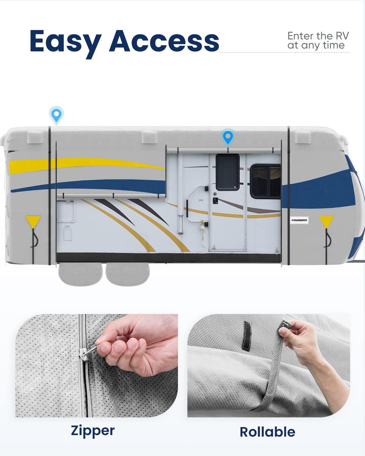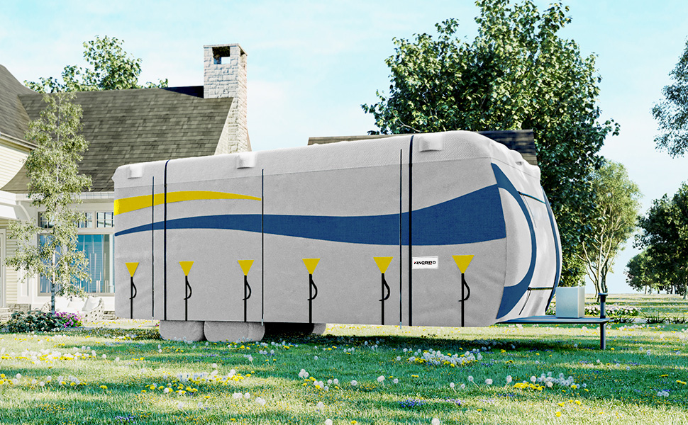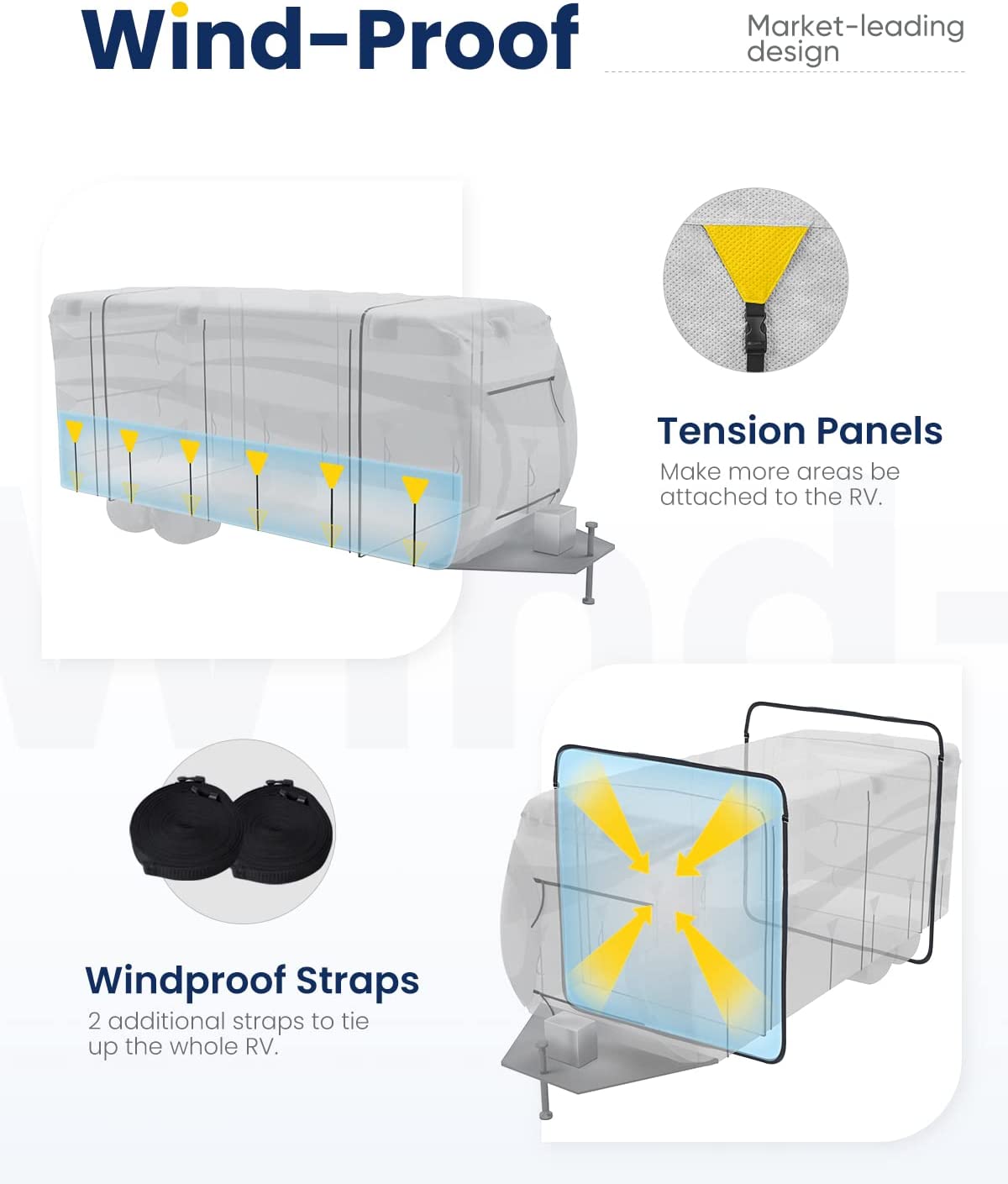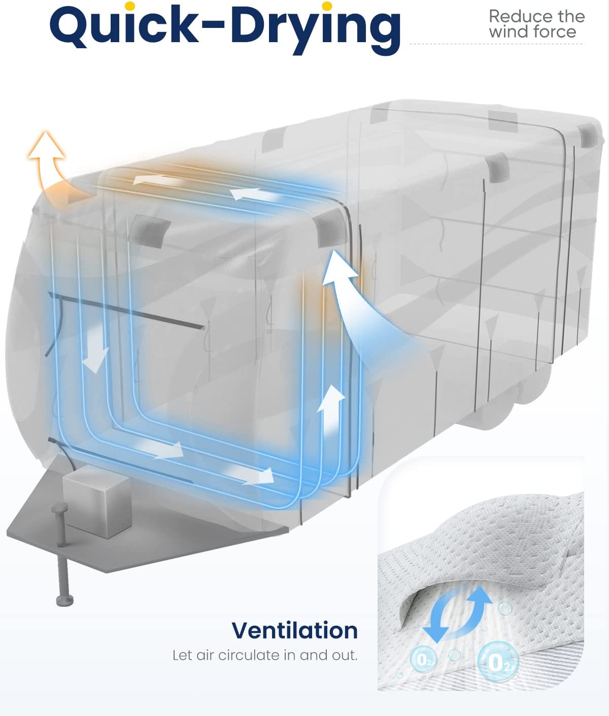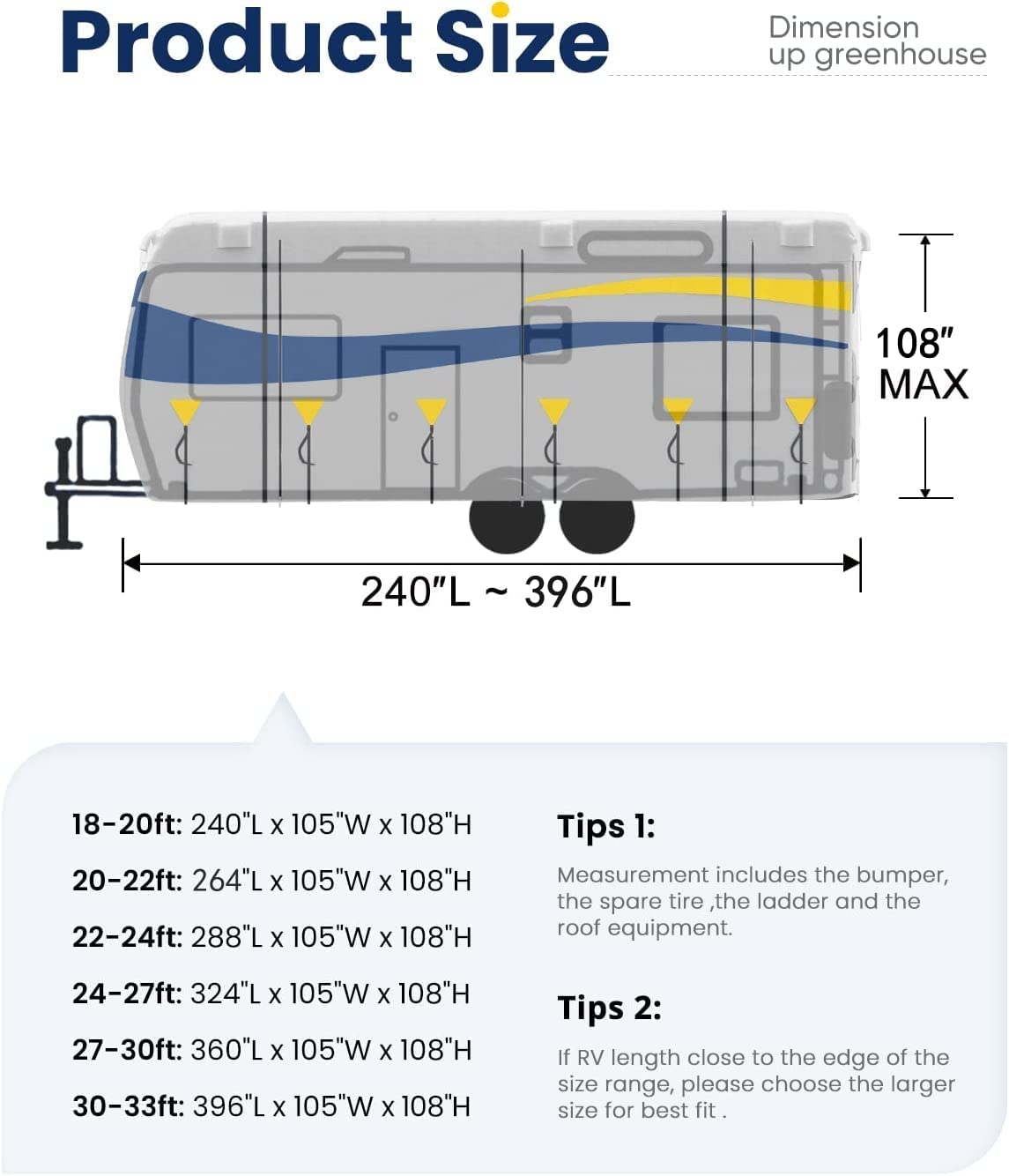 KING BIRD Tearstop-Tec Heavy Duty Travel Trailer Camper RV Cover, Fits Motorhome for Winter Snow, Anti-UV, Breathable