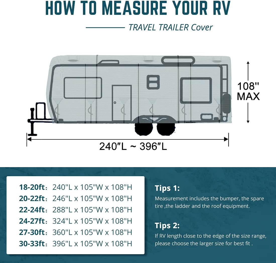 KING BIRD 210D Oxford Travel Trailer RV Cover, Rip-Stop Grid-Woven , Fits Camper Motorhome